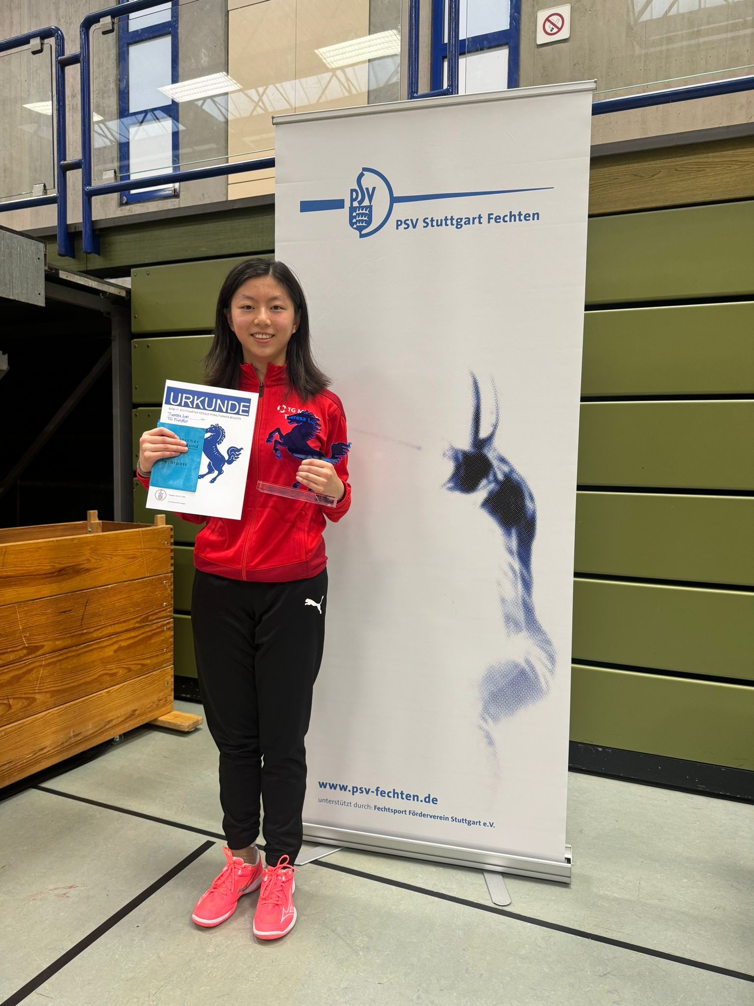 Auch der Nachwuchs bewies einmal mehr seine Klasse: Beim renommierten Rössle-Pokalturnier in Stuttgart sicherte sich Theresa Luo in der Altersklasse U15 den Turniersieg. Mit technisch starken Gefechten und großer Nervenstärke setzte sie sich gegen die Konkurrenz durch. Im Finale gewann sie gegen die amtierende Deutsche Meisterin der U13 Elisabeth Bejzel.